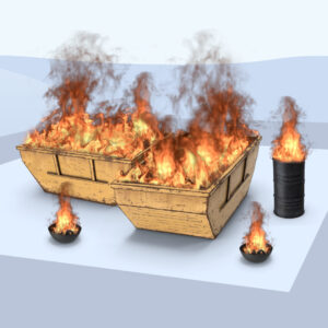 Conjunto de bidones, garrafas y otros recipientes donde se simulan conatos de incendio de clase B. Se practica la extinción mediante enfriamiento por agua con el uso de BIEs, mangueras portátiles con distintos tipos de lanzas en varios modos de acción. También utilizamos otros métodos de extinción como espuma de baja expansión y media expansión.