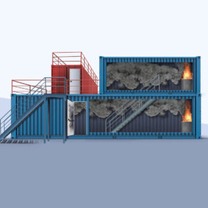 Nuestros módulos permiten entrenar con fuegos de clase A, B y C, riesgos eléctricos y químicos, espacios interiores, alturas, humo denso y fugas de gas.